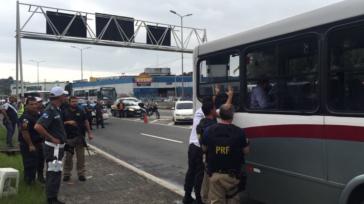 Um homem fez oito reféns dentro de um ônibus em um dos acessos à Ponte Rio-Niterói, no Rio de Janeiro, na manhã desta terça-feira. Após cerca de 1 hora, a Polícia Rodoviária entrou no coletivo e prendeu o assaltante.