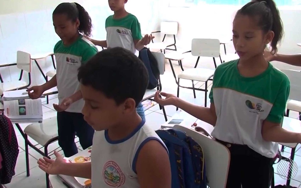 Crianças fazem oração na sala de aula em Porto Seguro, no Sul da Bahia I Foto: Imagem/ TV Santa Cruz