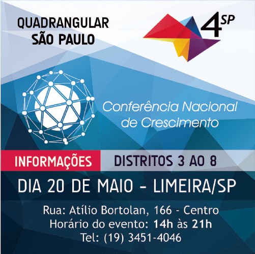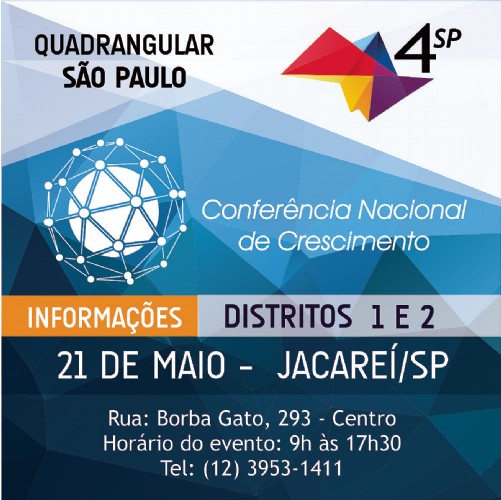 A conferência será realizada em diversas cidades do Brasil, acontecendo em Limeira/SP no dia 20/5 e em Jacareí/SP no dia 21/5. O credenciamento acontecerá às 8:30h com início do evento às 9h.