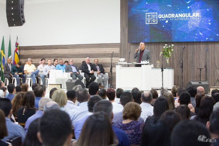 Realizada na tarde de ontem, dia 4/2, na IEQ Sede de Piracicaba, reunião contou com a presença dos Conselheiros Estaduais, Secretários, pastores e de autoridades. Palavra foi ministrada pelo presidente nacional da Quadrangular, rev. Mario de Oliveira e pelo interventor, rev. Antonio Carlos Stefan. Mais de 700 pessoas estiveram presentes na ocasião.